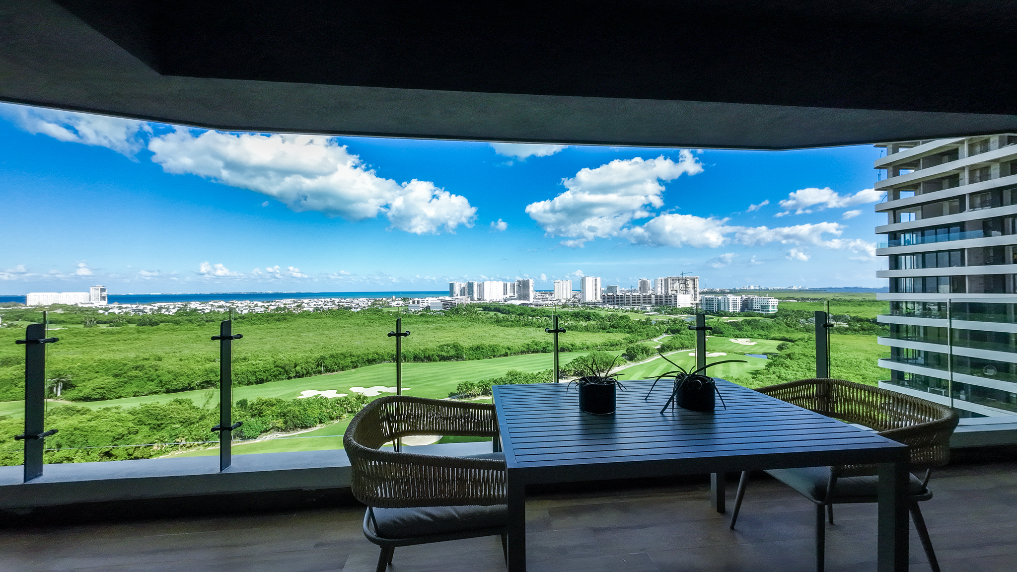 Residences offer unobstructed views of the Caribbean Sea, Puerto Cancun Golf Course, and the Natural Reserve.